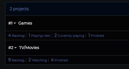 Obviously you can use this for anything from maintaining software tasks that need to be done, or organising daily or weekly tasks. Me? I'm using it to track games i'm playing and have beaten and TV Show and movies I want to watch. Why? Mostly because for me, it's nice to create lists of these kinds of things and be able to see a visual increase in the "completed work", or in this case, games completed and media watched!